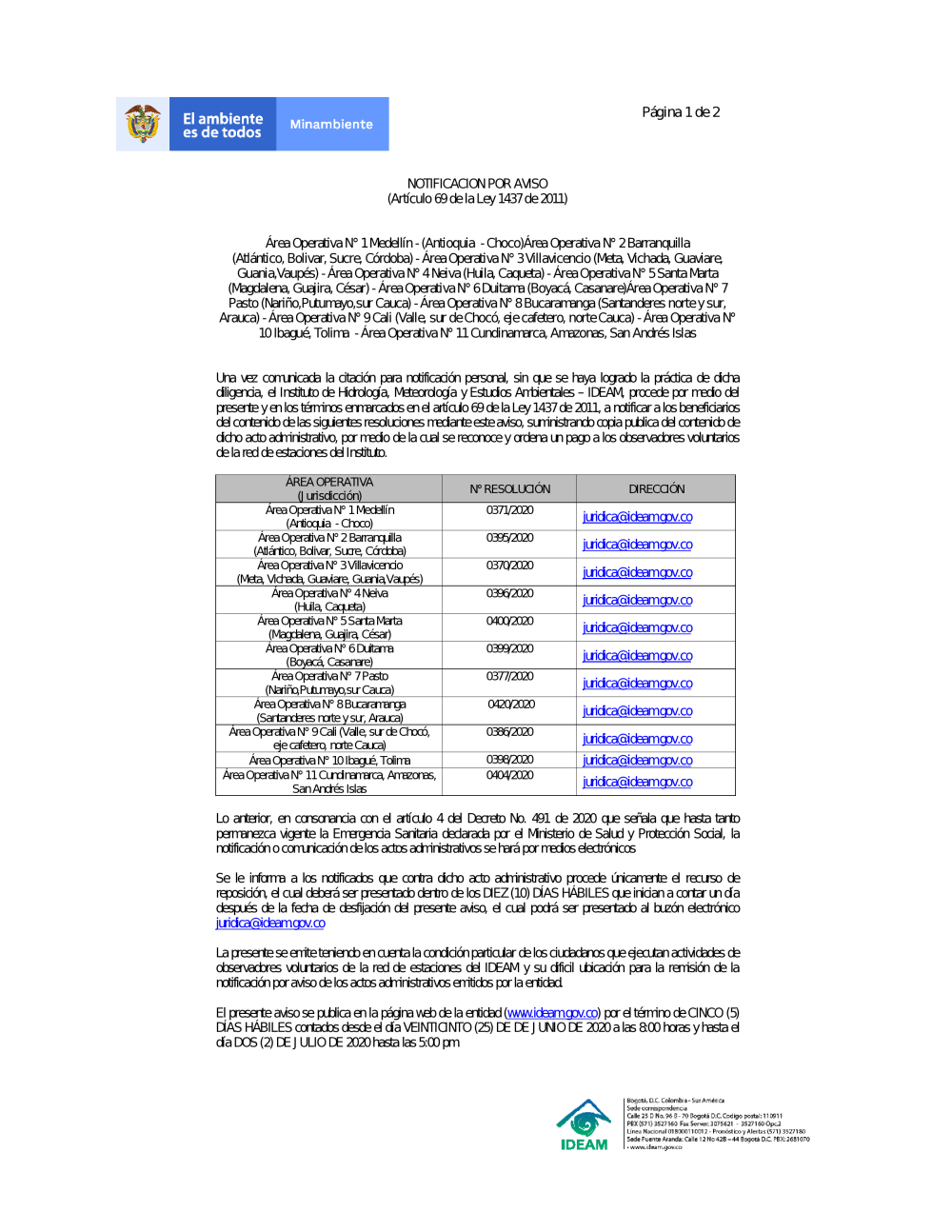 NOTIFICACIONES PERSONALES Y POR AVISO PARA OBSERVADORES VOLUNTARIOS
