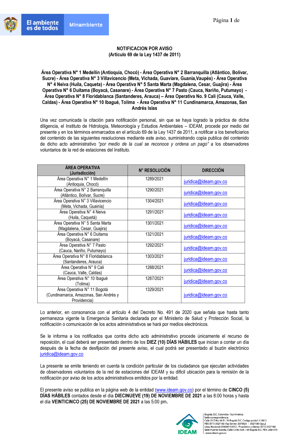 NOTIFICACIONES PERSONALES Y POR AVISO PARA OBSERVADORES VOLUNTARIOS
