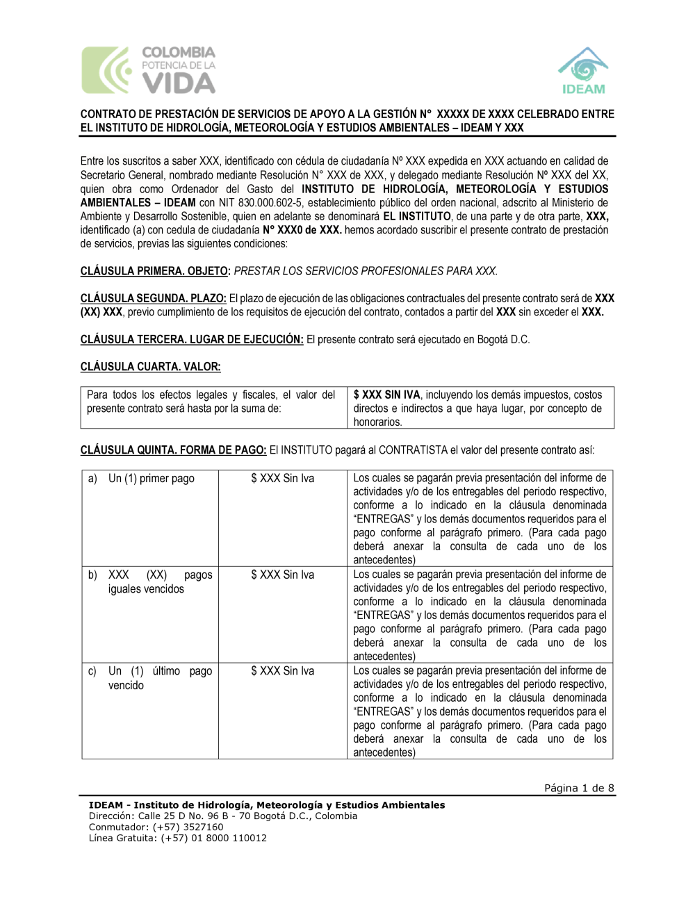 8.5 FORMATOS O MODELOS DE CONTRATOS O PLIEGOS TIPO