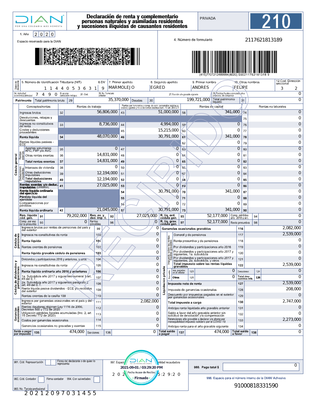 Declaracion de Renta Andres Marmolejo