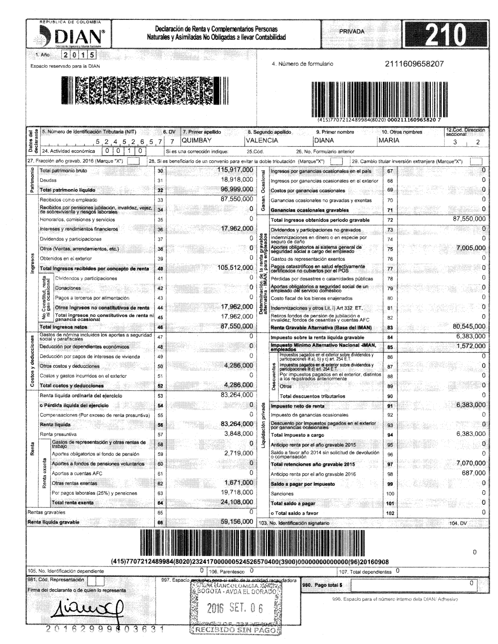 Declaracion de Renta 2015 DIANA QUIMBAY.pdf