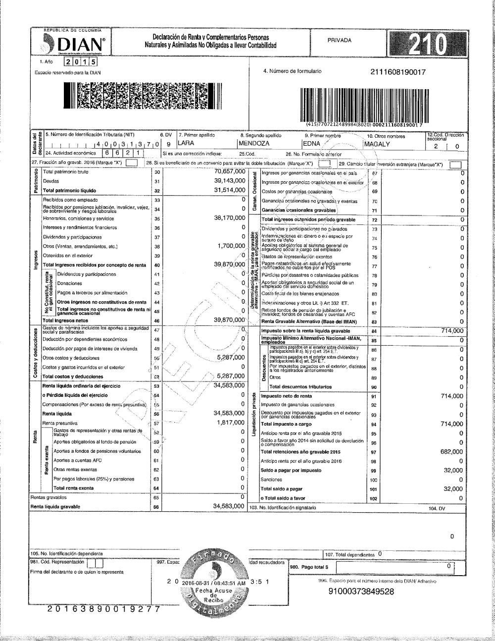 Declaración de Renta 2015 - Magaly Lara.pdf
