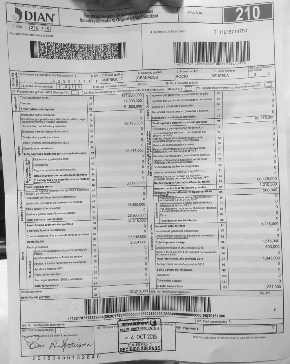 Declaracion de RENTA 2015 - Rocio Rodríguez
