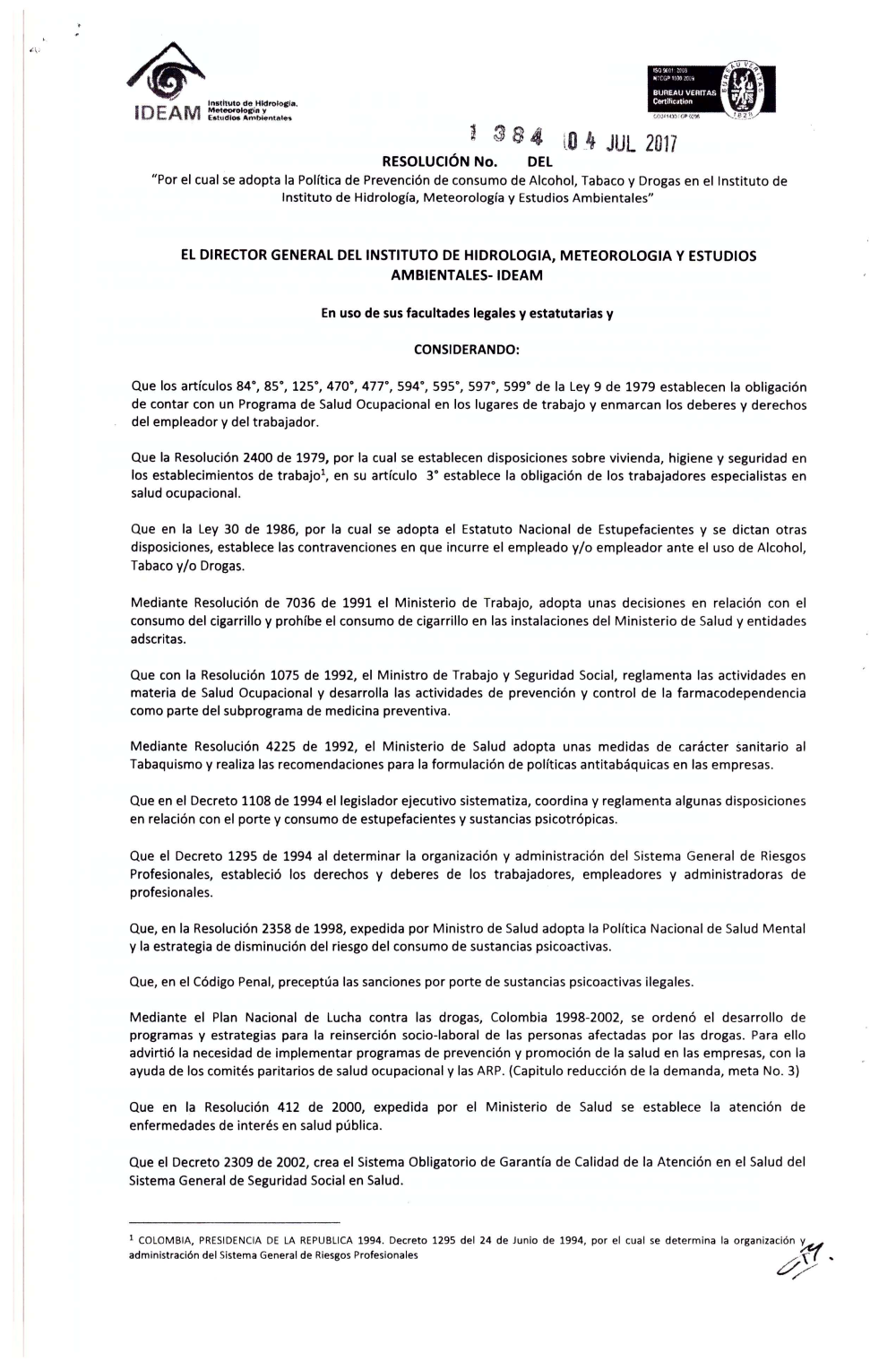 Politica antialcohol, prevencion de tabaco y drogas IDEAM 2017.pdf