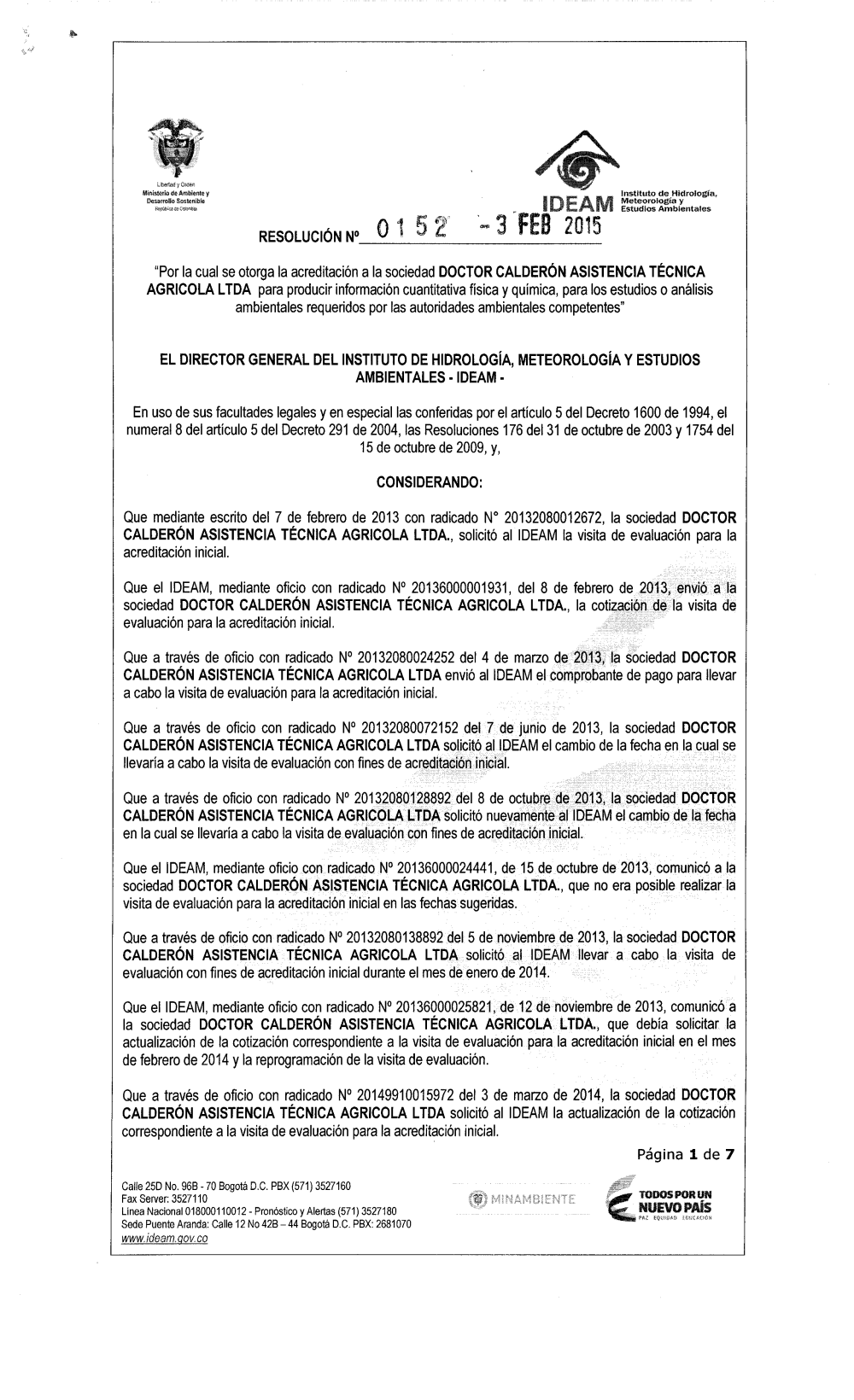 Laboratorios acreditados por el Instituto de Hidrología, Meteorología y Estudios Ambientales, IDEAM, bajo los lineamientos de la norma NTC-ISO/IEC 17025 ¿Requisitos Generales de Competencia de Laboratorios de Ensayo y Calibración¿, y según lo estipulado en el Decreto 1076 de 2015, ¿Decreto Único Reglamentario del Sector Ambiente y Desarrollo Sostenibles¿ artículo 2.2.8.9.1.7.