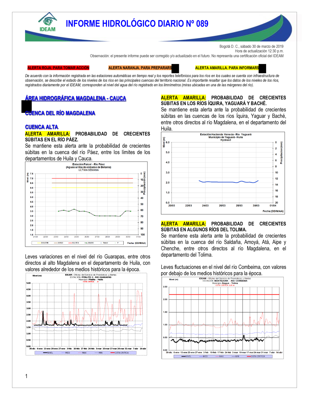 En general, el seguimiento que hace el Ideam del comportamiento hidrológico en los principales ríos del país se realiza con la información horaria en tiempo real que se recibe de las estaciones automáticas, complementadas con más de 40 estaciones hidrológicas que transmiten en las primeras horas cada mañana, los 365 días del año.