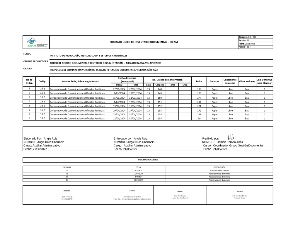 Eliminación de documentos por vigencia según el tiempo de retención del Archivo Central Dando cumplimiento a lo estipulado en el artículo 22 del Acuerdo 04 de 2019 del AGN, el...